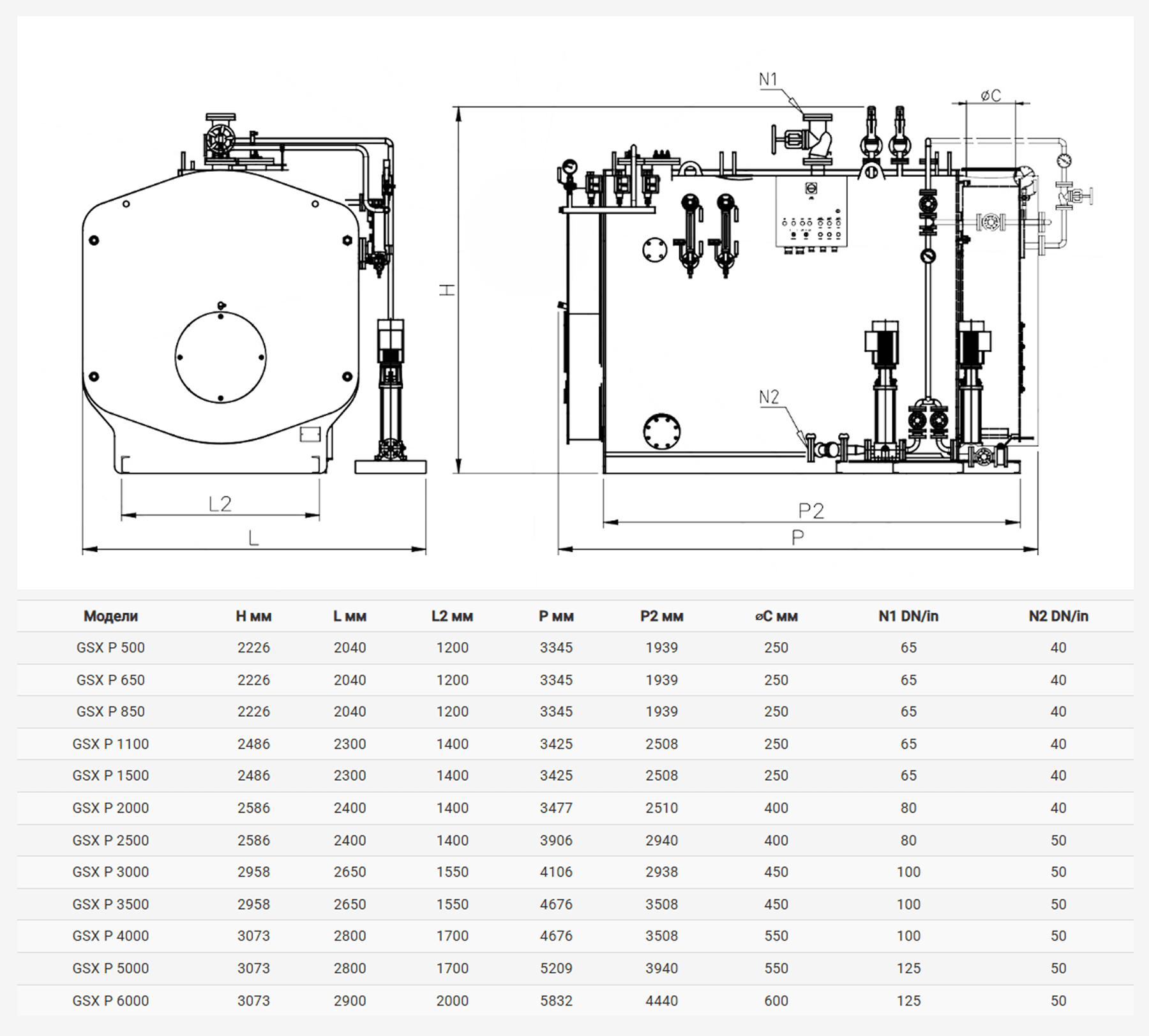 Котлы GSX P допускают установку заводского дополнительного оборудования — экономайзеров, систем регулирования питательной воды и утилизации тепла, что позволяет существенно снизить расход топлива.